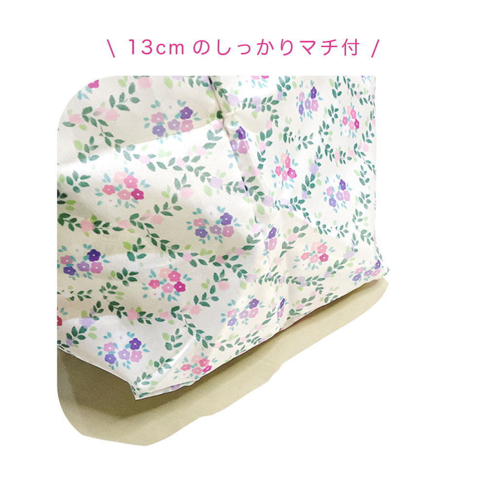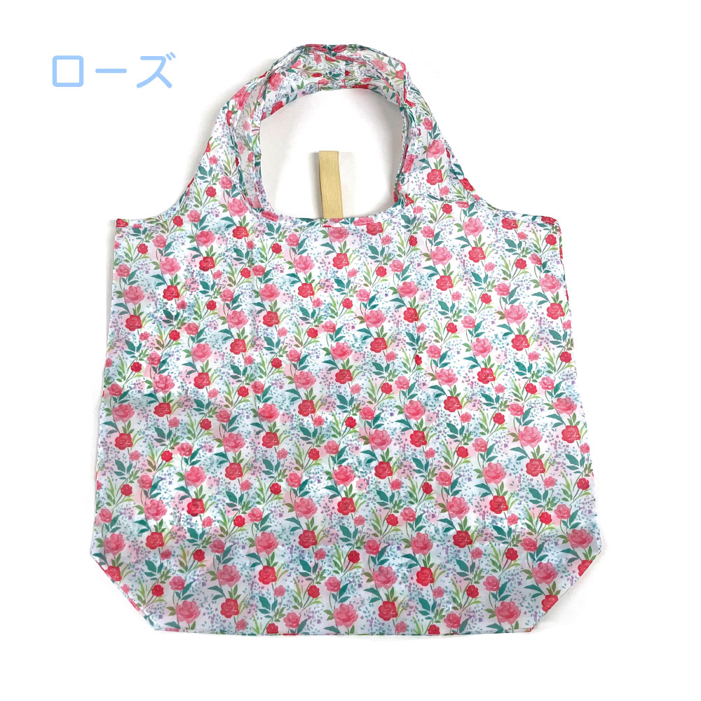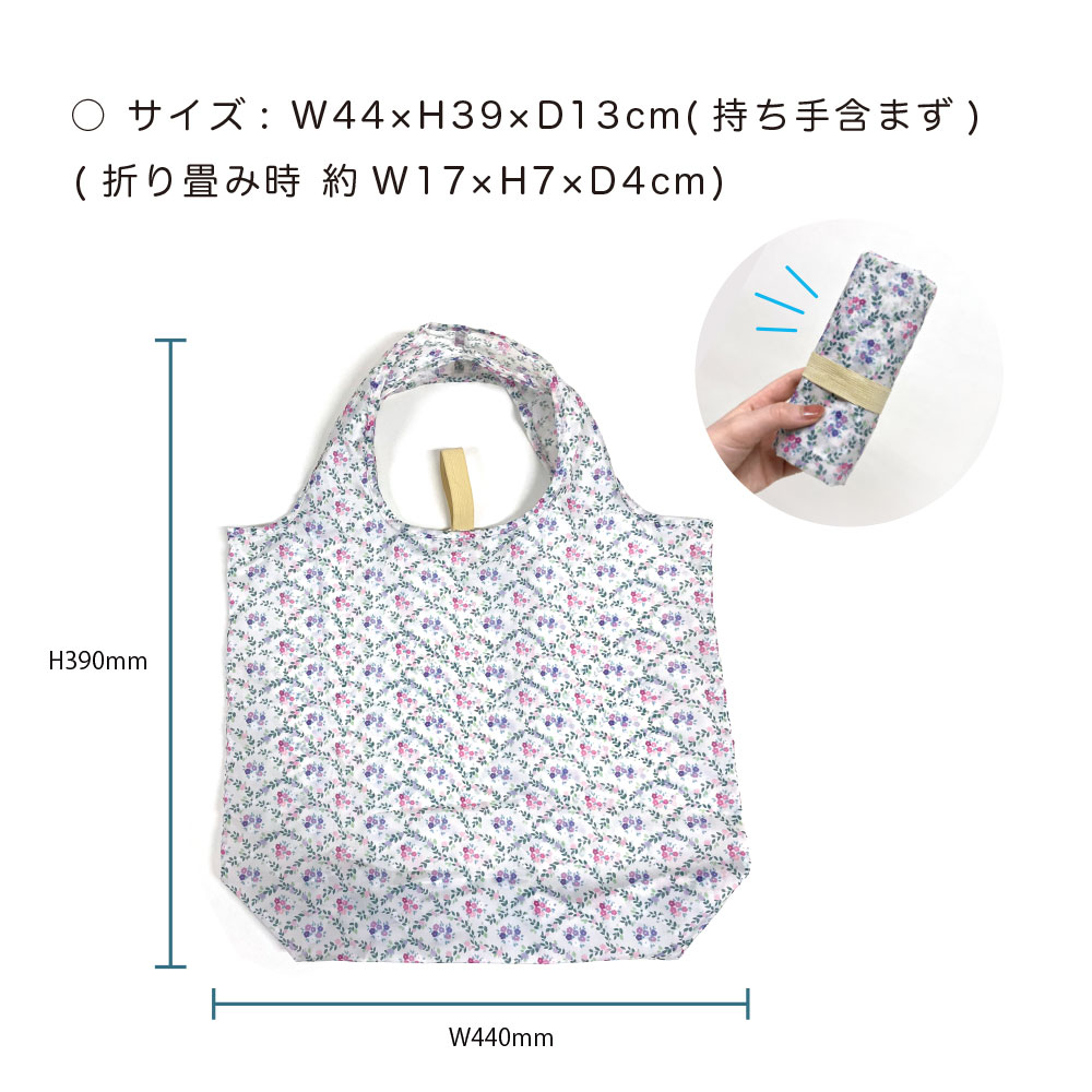 繊細な花柄の大容量エコバッグ。折りたたむとコンパクトになります。